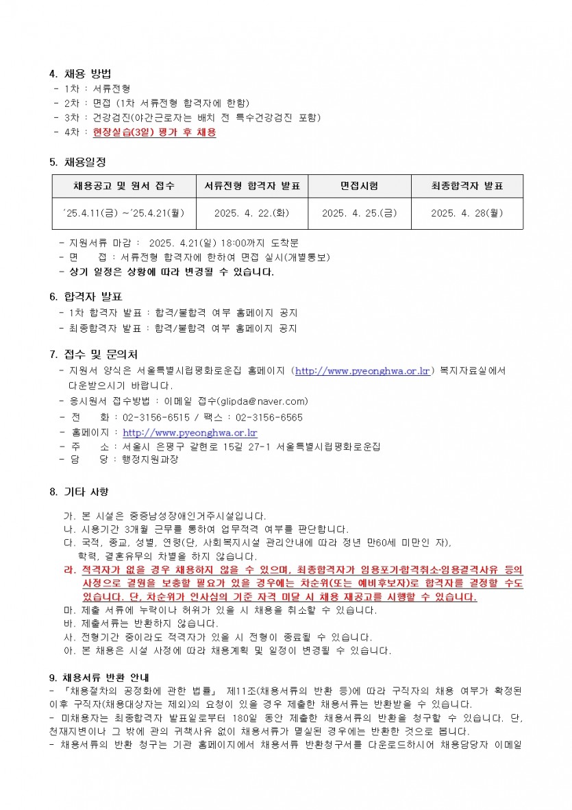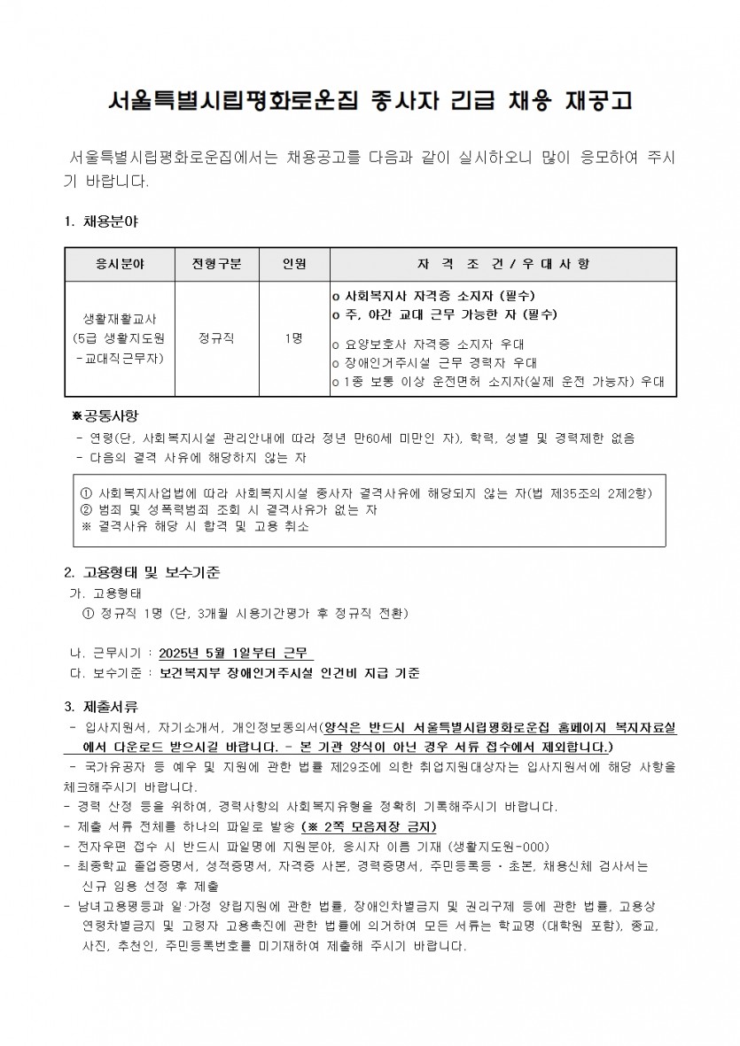 제2차 직원채용 결원으로 인한 긴급 재공고 페이지 정보 작성자 한동주 작성일 25-04-11 16:17 조회 12,234회 댓글 0건 첨부파일 파일 시립평화로운집 입사지원서이력서,자기소개서및개인정보동의서.hwp (54.0K) 142회 다운로드 DATE : 2025-04-11 16:17:06 본문 제2차 직원채용 결원으로 인한 긴급 재공고를 다음과 같이 진행합니다. 이전글 다음글 목록 답변