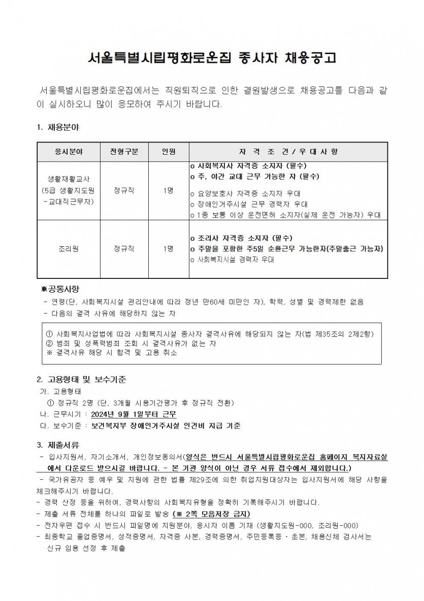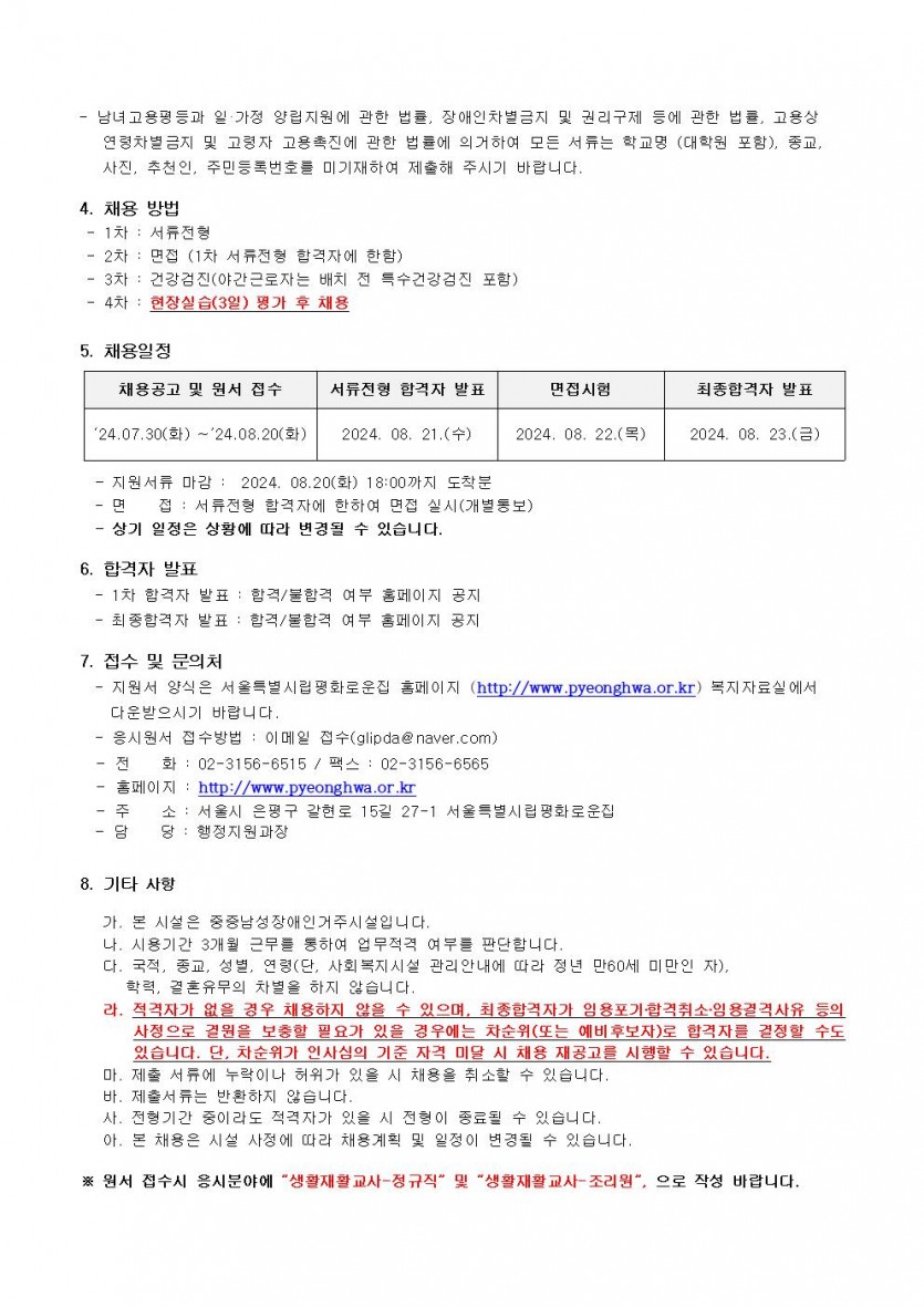 2024년 제8차 종사자채용 모집공고 페이지 정보 작성자 한동주 작성일 24-07-30 18:02 조회 18,373회 댓글 0건 첨부파일 파일 시립평화로운집 입사지원서이력서,자기소개서및개인정보동의서.hwp (22.5K) 178회 다운로드 DATE : 2024-07-30 18:02:25 본문 이전글 다음글 목록 답변