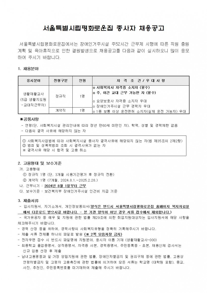 평화로운집 7차 종사자채용 공고 페이지 정보 작성자 한동주 작성일 24-07-08 13:33 조회 18,422회 댓글 0건 첨부파일 파일 2024년-생활지도원-7월.hwp (36.5K) 160회 다운로드 DATE : 2024-07-08 13:33:49 파일 시립평화로운집 입사지원서이력서,자기소개서및개인정보동의서.hwp (22.5K) 124회 다운로드 DATE : 2024-07-08 13:33:49 본문 이전글 다음글 목록 답변