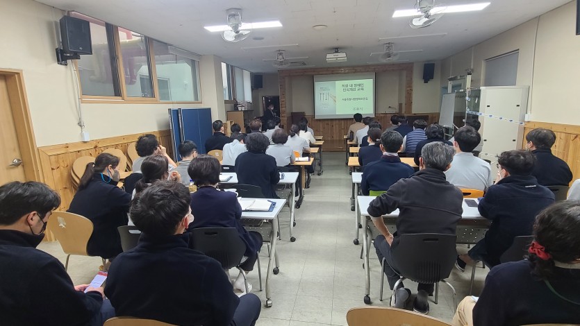 공지 | 장애인 인식 개선 교육 페이지 정보 작성자 장설궁 작성일 23-03-17 15:47 조회 7,782회 댓글 0건 본문 장애감수성을 키우고 장애공감문화 조성과 장애유무를 떠나 "우리는 모두 사람이니까" 라는 관점을 통해 포용사회 실현에 기여하기 위한 장애인 인식개선교육을 3월 15일 실시하였습니다. 열강을 해주신 조효식, 장양숙 강사님과 경청해주신 선생님들 감사합니다. 이전글 다음글 목록