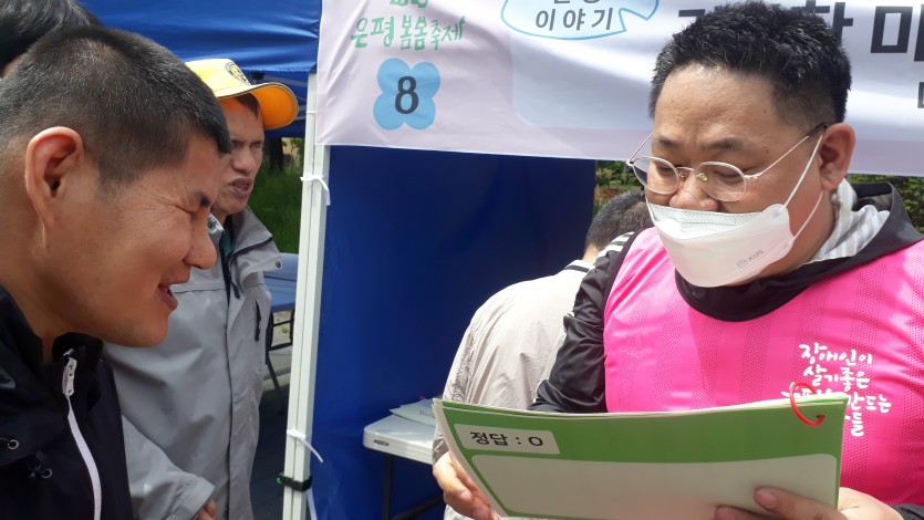 거주인 이야기 | 2023 은평봄봄축제 참가(4.21) 페이지 정보 작성자 한동주 작성일 23-04-22 15:54 조회 9,709회 댓글 0건 본문 장애인의 날을 맞이여서 준비된 서울 혁신파크 은평봄봄축제에 평화로운집 가족들과 함께 참여했습니다.인식개선활동 퀴즈 참여 및 이력서 작성등 활동도 참여하고 팝콘도 먹었습니다.장애인의 날을 맞아 모두 행복한 은평이 되기를 바래봅니다. 이전글 다음글 목록