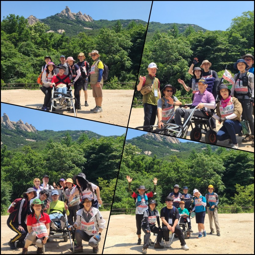 한국트레킹연맹의 특수 장애인용 트레킹 휠체어를 이용하여 산속의 작고 귀여운 다람쥐도 구경하고
