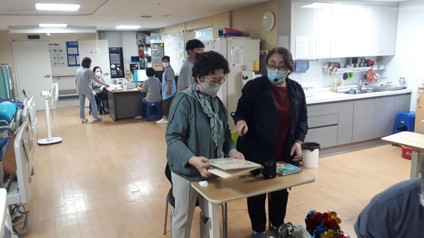 후원자·봉사자 이야기 | 와상 중증장애인을 위한 동화구연활동 봉사 페이지 정보 작성자 한동주 작성일 22-10-18 18:04 조회 10,028회 댓글 0건 본문 코로나가 안정되면서 조심스럽게 지역주민들과 함께 봉사활동을 늘려가고 있습니다.특히 항상 침상생활을 하고 있는 중환자실의 장애인들을 위한 동화구연 봉사활동이 있습니다.매주 월요일마다 동화책과 재미난 이야기뿐만 아니라 마술공연등을 통해 기쁨을 드리고 있습니다.항상 활동해 주심에 감사드립니다. *방문 봉사자들은 코로나 자가키트를 활용하여 음성확인 후 봉사활동을 진행하고 있습니다. 이전글 다음글 목록