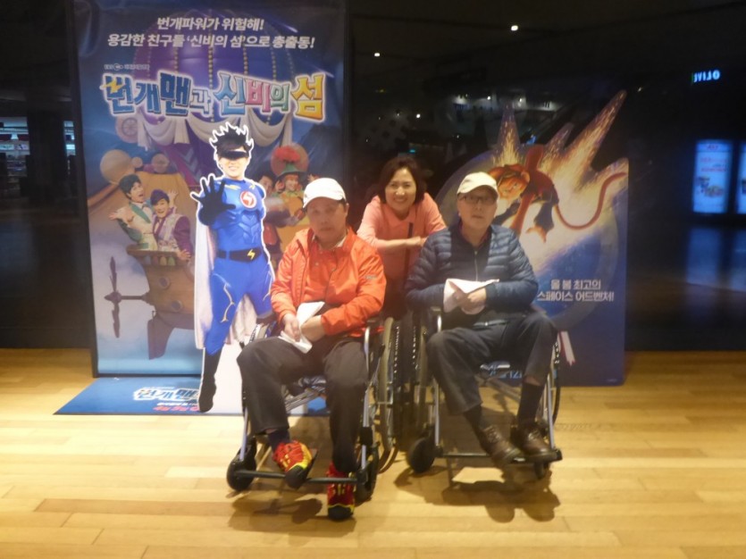 문화체험 나들이 페이지 정보 작성자 이선희 작성일 18-04-16 09:49 조회 9,783회 댓글 0건 첨부파일 본문 제1생활관에 거주하고 계신 윤주*님과 이근*님을 모시고상암CGV 에서 영화를 관람하고 왔습니다.꽃샘추위 시샘으로 약간 추운 날씨였지만 다양한 볼거리, 먹거리, 간식거리로 종일 얼굴에 웃음이 만연한 즐거운 하루였습니다. 이전글 다음글 목록