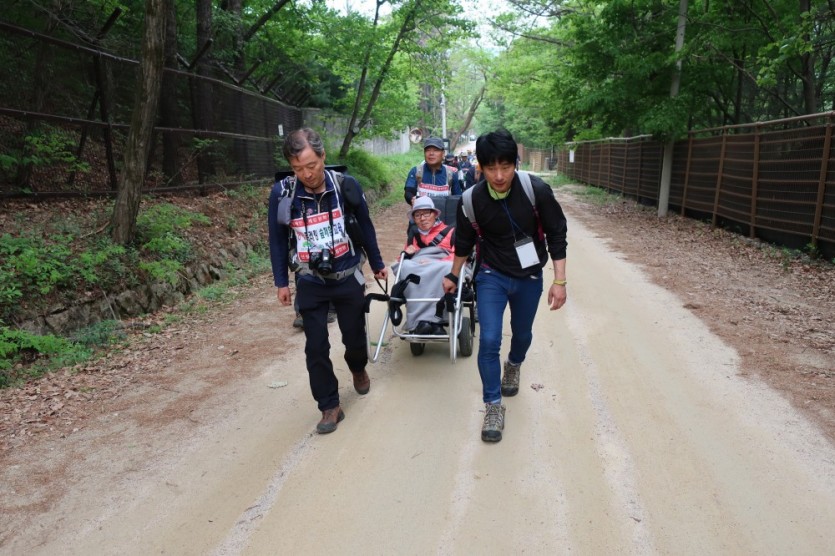 (사)한국트레킹연맹 후원으로 장애인 휠체어 트레킹 숲 체험활동을 하였습니다.