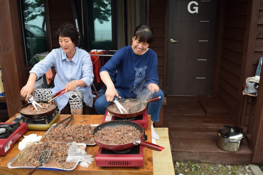 선생님들이 열심히 준비해주신 불고기, 소세지, 목살, 스테이크, 회까지♡