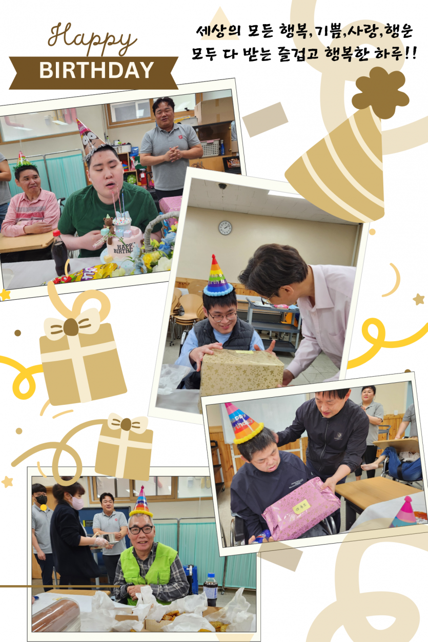 거주인 이야기 | 5월 생신잔치 페이지 정보 작성자 장설궁 작성일 24-05-15 18:05 조회 7,778회 댓글 0건 본문 5월 생신잔치가 13일 치킨과 아이스크림케잌 들로 진행 되었습니다. 당신이 아름다운 이유는 다른 사람들 보다 멋있고 능력있고 매력적이라서가 아닙니다.이 세상에 당신이 존재하기 때문에 당신밖에 없기 때문입니다.생신축하드립니다. 이전글 다음글 목록