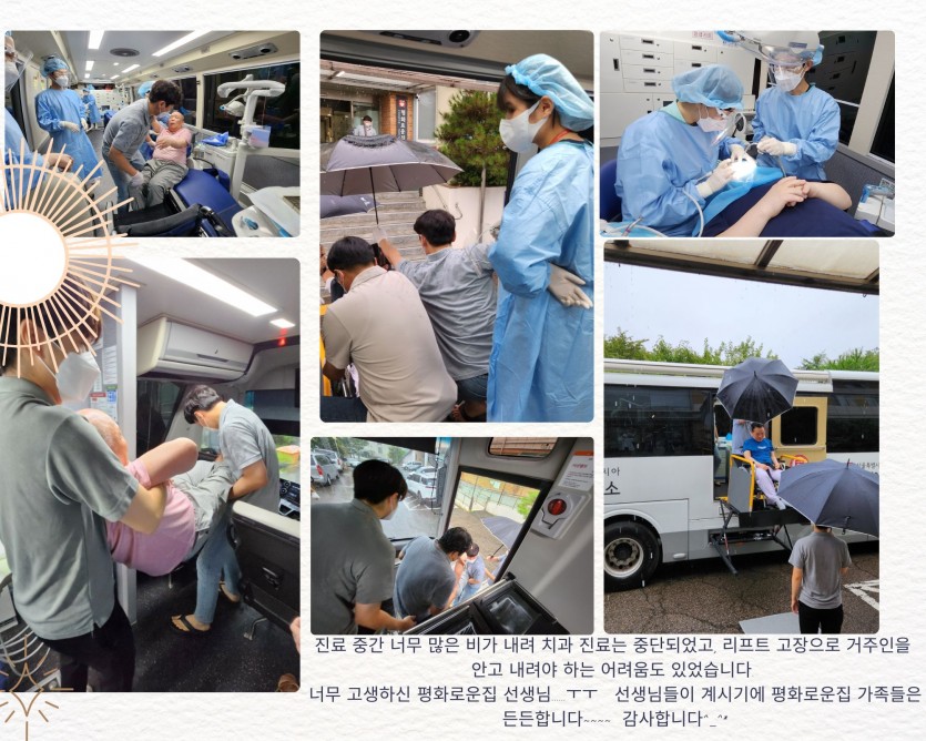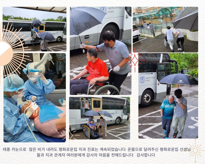 거주인 이야기 | 0810 2차 치과진료 페이지 정보 작성자 장설궁 작성일 23-08-10 17:53 조회 9,106회 댓글 1건 본문 태풍 카눈이 북상하며 많은 비가 내리는 가운데 장애인치과병원 2차 진료가 진행되었습니다. 의료진과 평화로운집 선생님들에게 다시 한번 감사의 마음을 전합니다."감사합니다" 태풍의 영향으로 강풍과 폭우가 예상된다고 합니다. 태풍으로 인한 피해 없도록 조심하세요무사히 태풍이 지나가기를 바랍니다. 댓글목록 조윤기님의 댓글 조윤기 작성일 23-08-18 19:26 비가 오는 가운데 모두 수고 많으셨습니다 비가 오는 가운데 모두 수고 많으셨습니다 이전글 다음글 목록