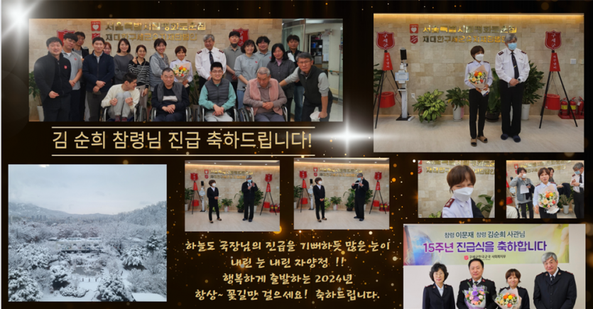 김순희 국장님 (참령) 진급식 페이지 정보 작성자 장설궁 작성일 24-02-22 16:22 조회 6,126회 댓글 0건 본문 김순희 국장님의 (참령)진급식 축하 드립니다.앞으로도 항상 건강하시고 행복하셨으면 좋겠습니다.늘 뒤에서 응원하는 평화로운가족^^진급을 진심으로 축하 드립니다~~~~ 이전글 다음글 목록