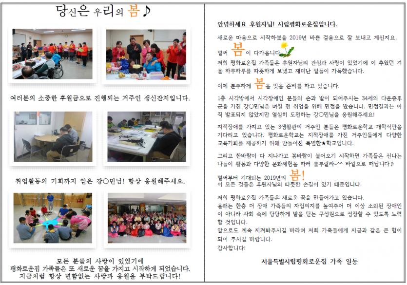 2019년 3월 후원자 감사편지 페이지 정보 작성자 박상은 작성일 20-09-11 11:30 조회 14,033회 댓글 0건 본문 늘 나눔으로 함께해주시는 후원자님께감사의 편지를 올립니다. 이전글 다음글 목록
