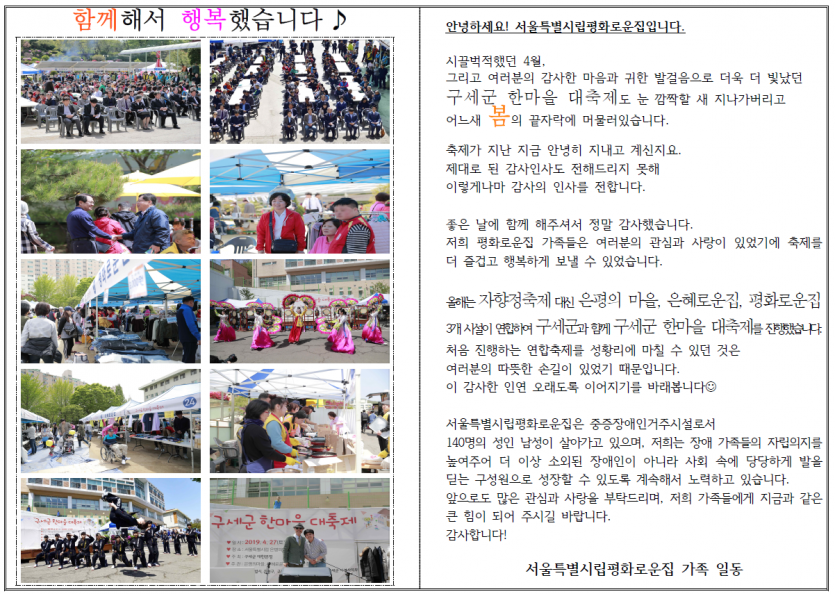 2019년 4월 후원자 감사편지_연합축제관련 페이지 정보 작성자 박상은 작성일 20-09-11 11:48 조회 13,637회 댓글 0건 본문 늘 나눔으로 함께해주시는 후원자님께감사의 편지를 올립니다. 이전글 다음글 목록