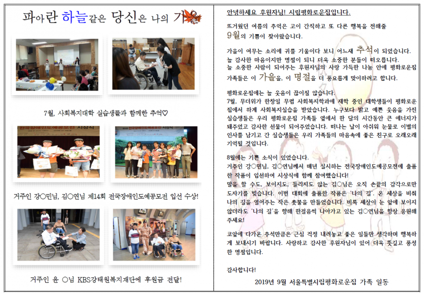 2019년 9월 후원자 감사편지 페이지 정보 작성자 박상은 작성일 20-09-11 11:52 조회 13,898회 댓글 0건 본문 늘 나눔으로 함께해주시는 후원자님께감사의 편지를 올립니다.첨부파일 열람 부탁드립니다♡ 이전글 다음글 목록