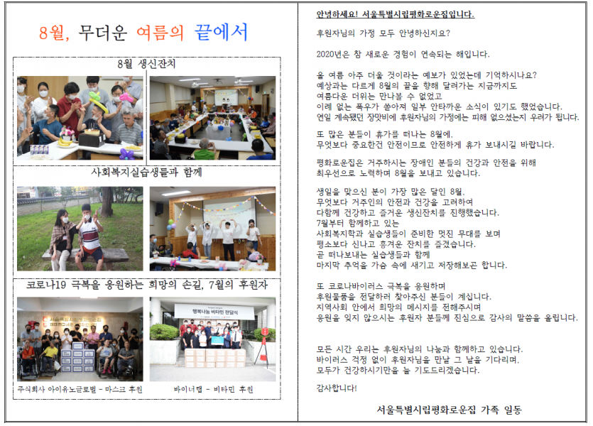 2020년 8월 후원자 감사편지 페이지 정보 작성자 박상은 작성일 20-09-11 15:55 조회 14,038회 댓글 0건 본문 늘 나눔으로 함께해주시는 후원자님께감사의 편지를 올립니다. 이전글 다음글 목록