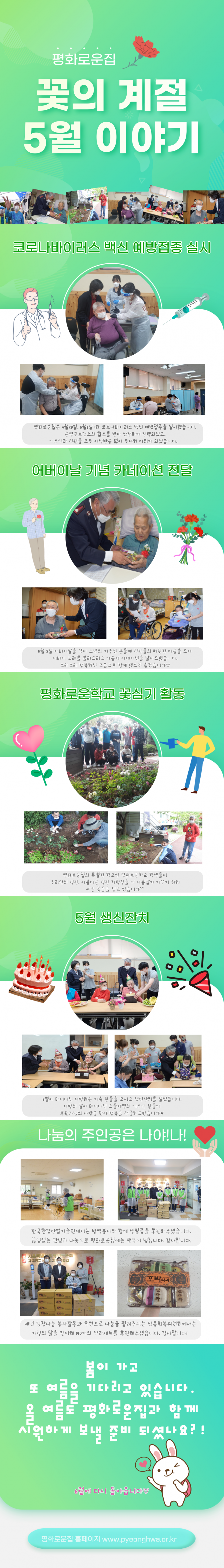 서울특별시립평화로운집 5월 카드 뉴스! 페이지 정보 작성자 박성호 작성일 21-05-25 11:25 조회 17,222회 댓글 0건 본문 가정의달 5월!2021년 서울특별시립평화로운집의 5월엔 어떤일이 있었을까요?간편하게 볼 수 있도록 카드뉴스를 제작 했습니다! 카드뉴스를 통해 시립평화로운집의 5월을 확인해 보세요~! 이전글 다음글 목록